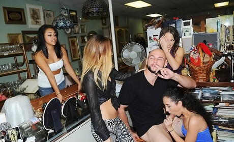 Sultry american Roxanne Rae in skirt enjoy amazing group sex scene
