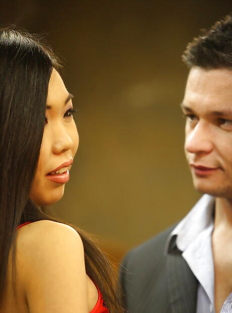 Sultry asian brunette Yiki in sexy panties enjoy hardcore 3some action