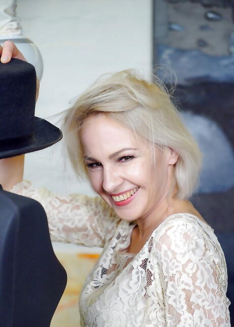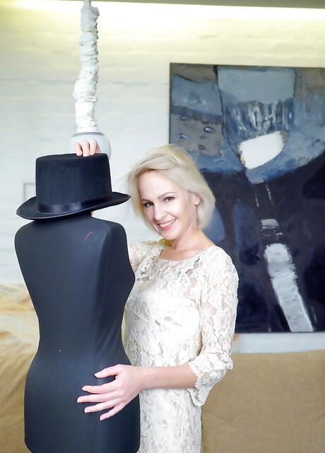 Sultry blonde wife Artemia in sexy lingery exhibiting small tits and spreading her legs
