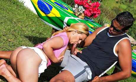Sultry latina Dani Miranda in fancy skirt in xxx hardcore scene outdoor