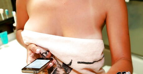 Sultry latina dark-haired Sofia Rivera work with wet lips on rod and gets a cum blast on face