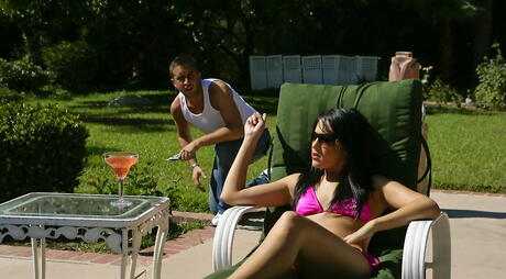 Sultry wife Chelsea Rae in fancy bikini suck dick and take it in the ass outdoor