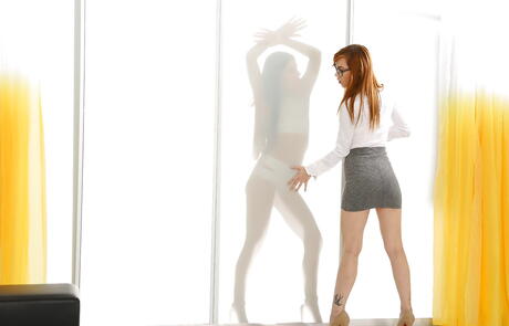 Sultry women Foxy Sanie and Eveline Dellai in fancy skirt licking wet pussies in the hot lesbian sex