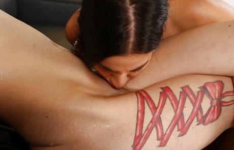 Sultry women Foxy Sanie and Eveline Dellai in sexy glasses exploring fisting pleasures