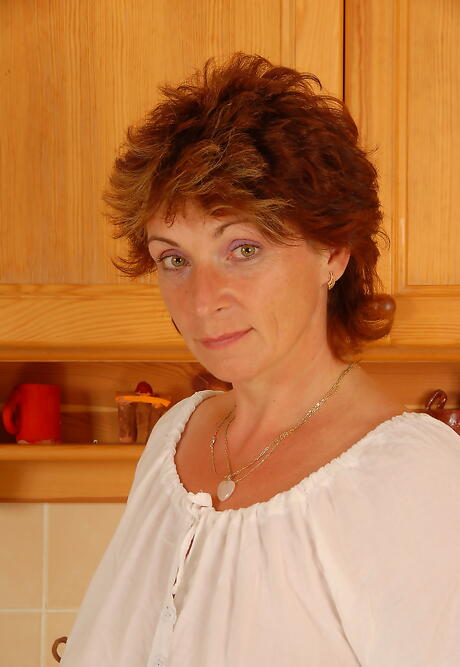 Superb aged Misti exhibits big knockers and hairy beaver in the kitchen