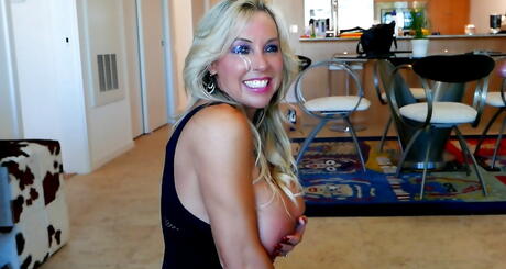 Superb american blond housewife Sandra Otterson in stockings blows on big black dick and gets a facial