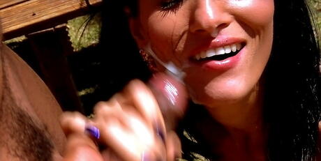 Superb latina brunette Amanda Soares in hot undies fucked in the ass outdoor