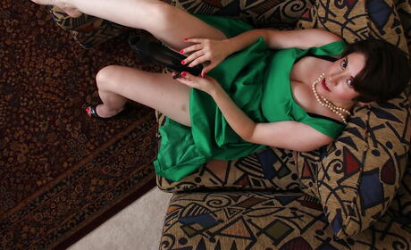 Superb mature Sadie Jones exposing big knockers and toying her pussy