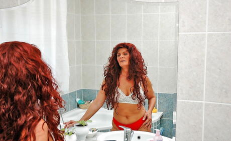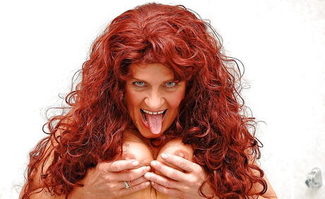 Superb older Tammy baring big hooters and hairy pussy in bath