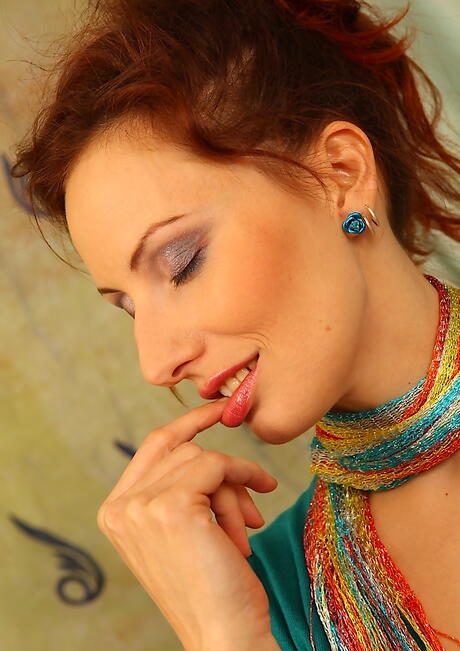 Superb red-haired milf Misa in sexy undies reveals her butt and jerks off