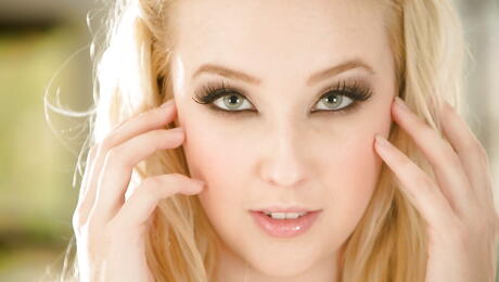 Svelte american blond Samantha Rone in hot undies reveals small tits and shaved pussy