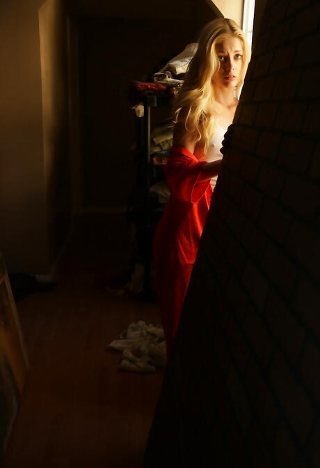 Svelte american blonde teen Charlotte Stokely bares tiny tits and masturbates
