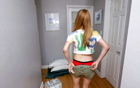 Svelte american blonde teen Hannah Hays in sexy shorts fucked by big rod after good blowjob