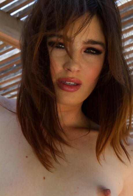 Svelte american brunette cutie Jodi Taylor in sexy panties shows small tits and hot ass outside