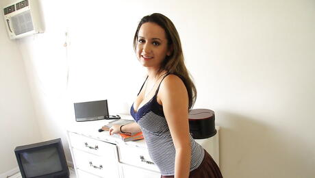 Svelte american brunette hottie Aly Berk revealing small tits and sexy ass