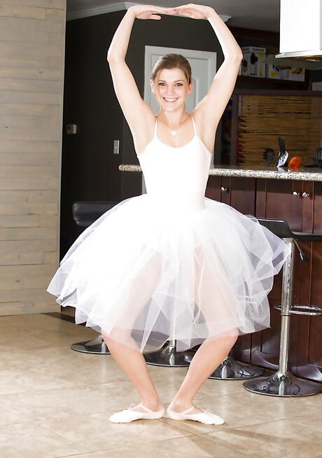 Svelte american teen Aubrey Snow exposing tiny tits and pussy