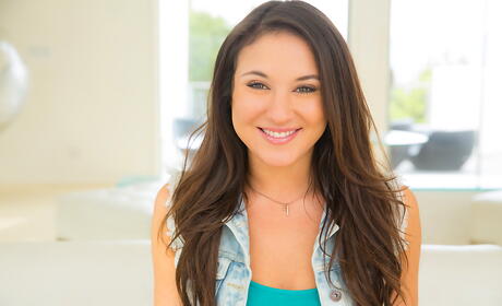 Svelte american young Kylie Kalvetti showing big tits and spreading her legs