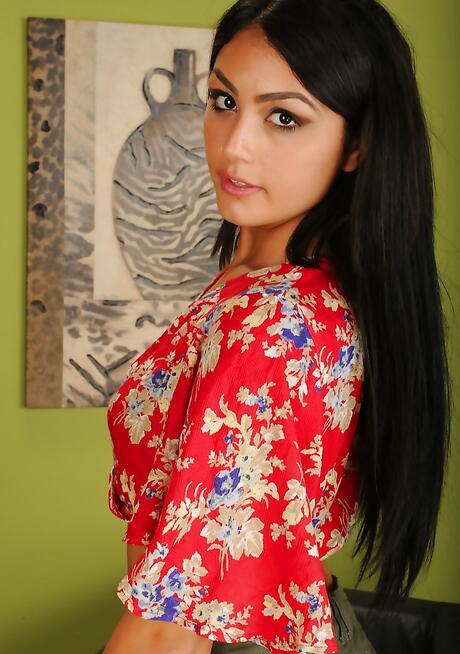Svelte american young Kylie Sinner uncovering tiny tits and spreading her legs