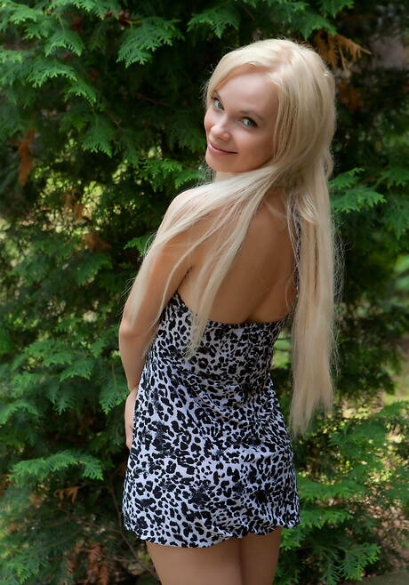 Svelte blonde babe Feeona A in sexy skirt loves some hot foot fetish outdoor