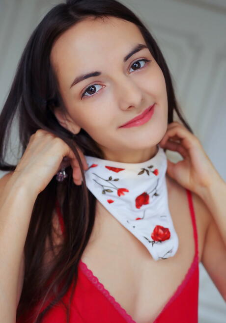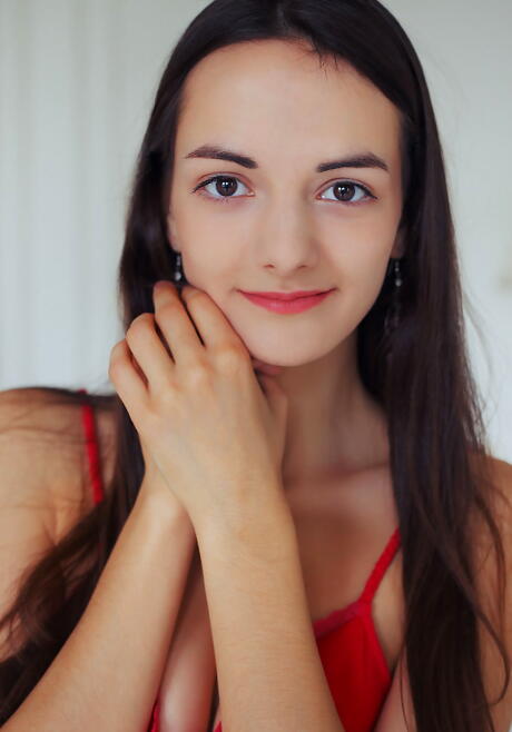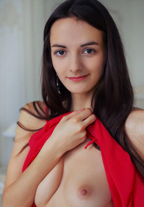 Svelte brunette teen Erika C exhibiting small tits and spreading her legs