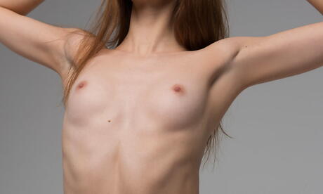 Svelte brunette teen Milana in sexy underwear exhibiting small tits and spreading her legs
