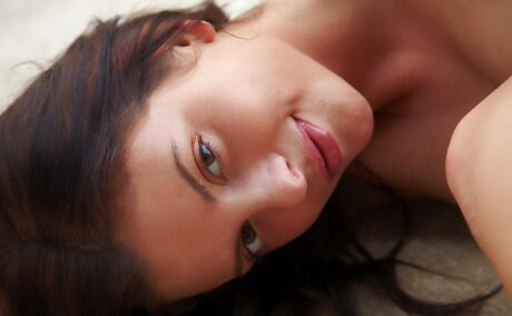 Svelte brunette young Stasia showing tiny tits and spreading her legs at pool