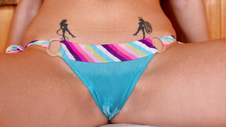 Svelte czech hottie Victoria Daniels in fancy bikini unveils tiny tits and jerks off in bathroom