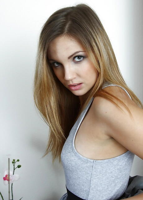 Svelte czech youthful Linda Blink shows tiny tits and spreads her legs