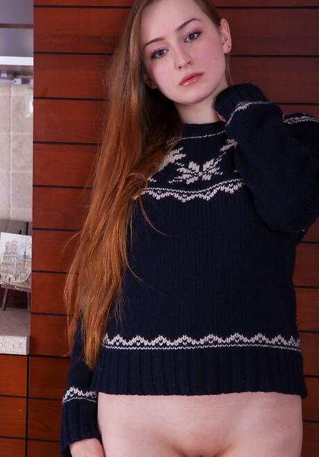 Svelte youthful Evelin exhibiting small tits and shaved pussy
