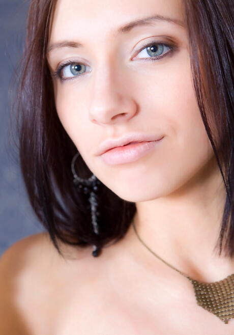 Svelte youthful Simone B in sexy underwear shows big titties and bald pussy