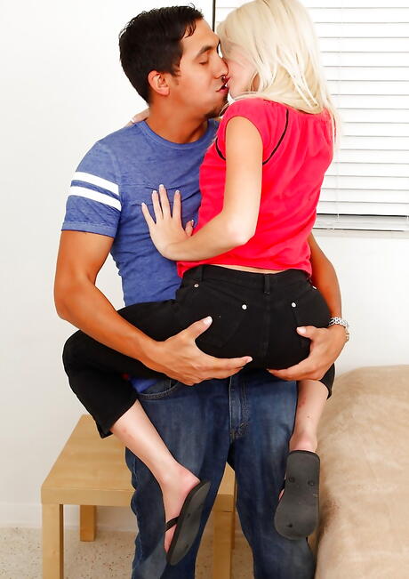 Sylphlike american blond teen Stacey Kiss hard fucked after sucking huge dick