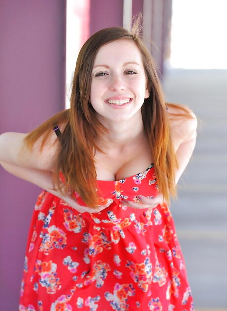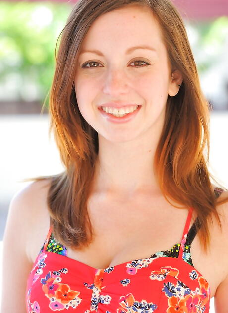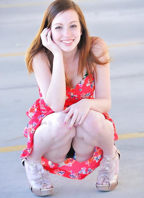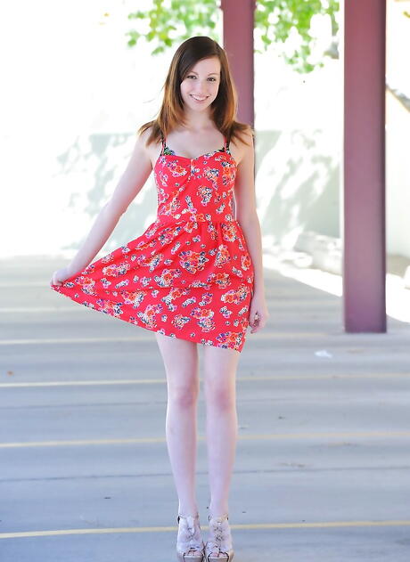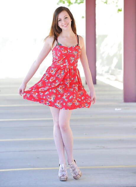 Sylphlike american dark hair teen Victoria Voss in sexy underwear shows big titties and spreads her legs outdoor