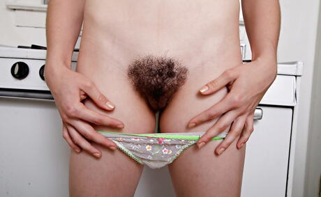 Sylphlike american teen Kasey Warner in shorts exposes tiny tits and spreads her legs in the kitchen