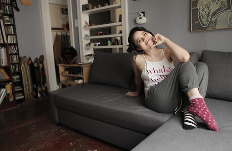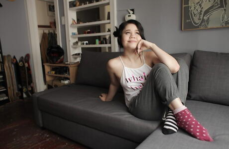 Sylphlike american teen Yhivi exposes her ass and spreads her legs