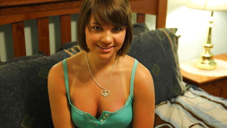 Sylphlike american youthful Amy Anderson in sexy undies exhibiting her butt