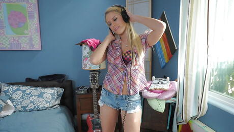 Sylphlike american youthful Vanessa Cage shows big boobies and jerks off