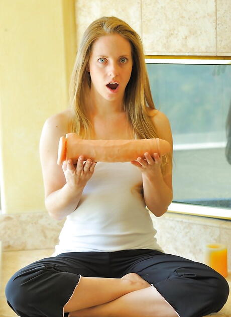 Sylphlike blond young Elyse exposes small tits and loves sex toy