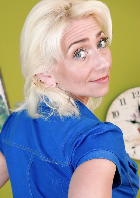 Sylphlike blonde milf Janotova in nice skirt exposes tiny tits and jerks off