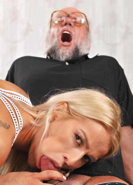 Sylphlike blonde teen Chary Kiss sucking deep dick and gets a cum shot on face