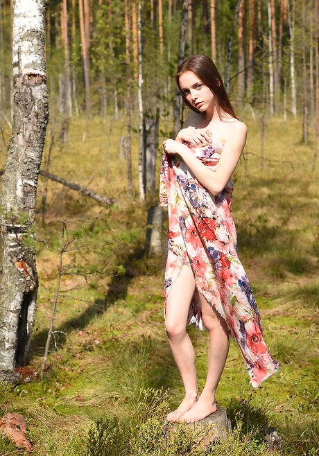 Sylphlike brunette teen Lapa exhibiting tiny tits and butt outside
