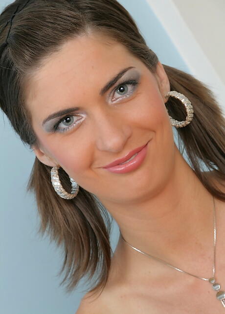 Sylphlike brunette young Nikky exposing big boobies and masturbating