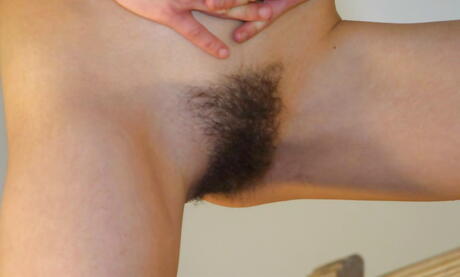 Sylphlike brunette youthful Katelyn revealing her ass and hairy pussy