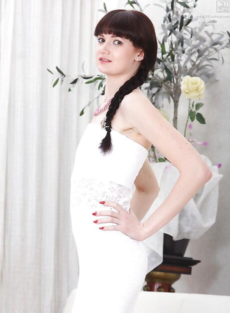Sylphlike cutie Emmy Lee in hot stockings exhibits small tits and sexy butt