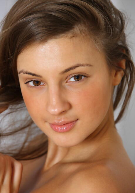Sylphlike dark hair teen Melena A baring tiny tits and spreading her legs