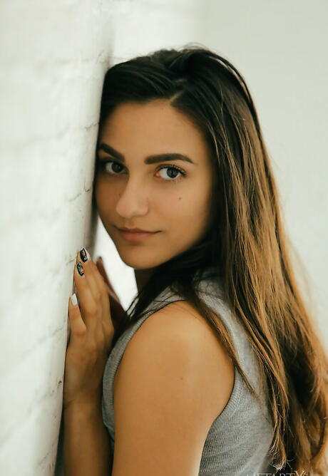 Sylphlike dark-haired teen Cira Nerri in fancy shorts likes some hot foot fetish