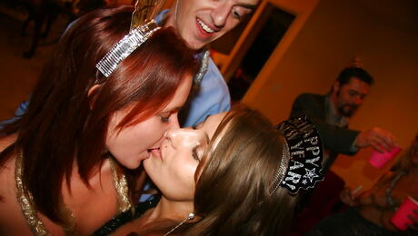 Sylphlike girls Sophia Sutra, Lexi Swallow and Tweety Valentine take part in hardcore orgy on the night party