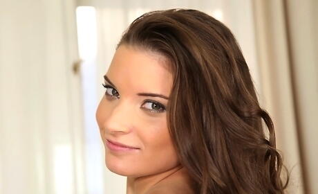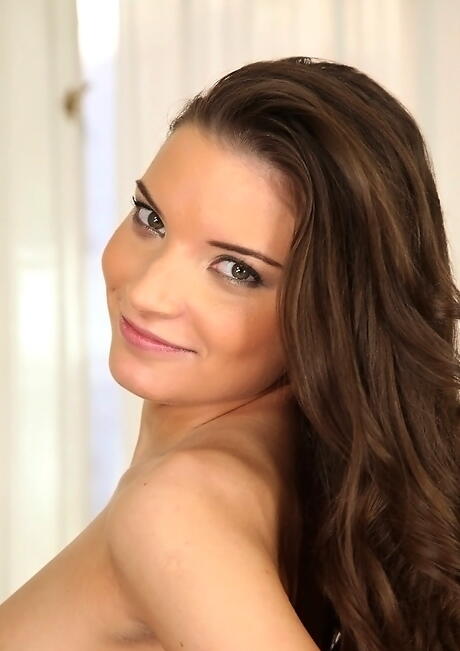 Sylphlike hungarian pornstar Anita Berlusconi in fancy shorts revealing small tits and shaved pussy