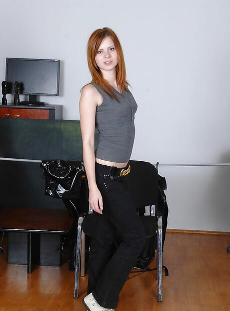 Sylphlike hungarian red-haired teen Judy Smile in lingerie likes some hot foot fetish in office