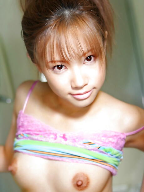 Sylphlike japanese young Reika Shina exposes tiny tits and spreads her legs in kitchen