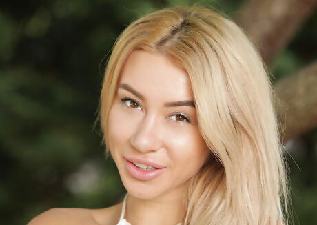 Sylphlike russian blonde young Katrin Tequila exhibiting small tits and toying her pussy outdoor
